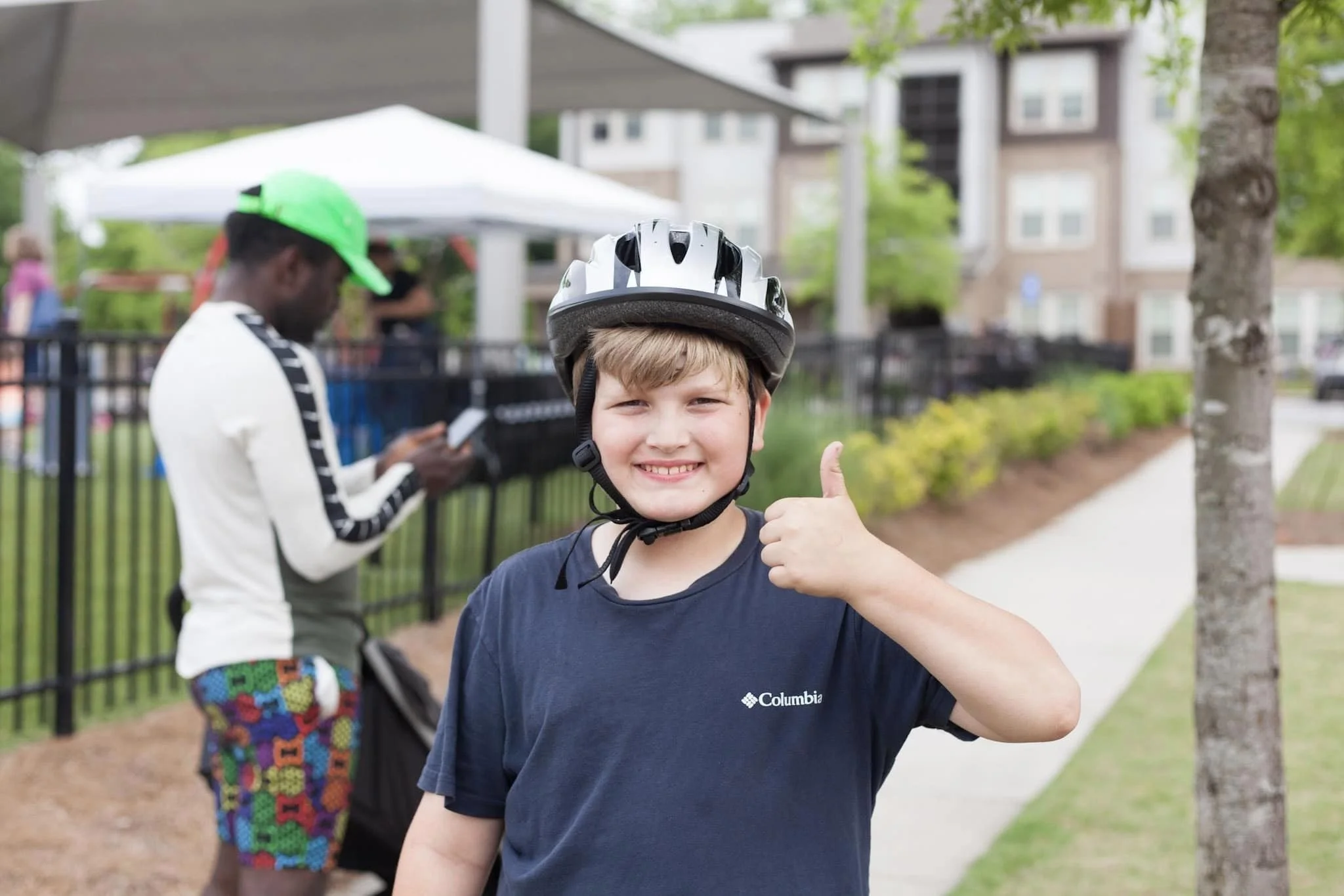 Ride alongside your children and stay together until you’re confident they can ride safely on their own. It is important you role model safe behaviors by wearing a helmet and obeying traffic laws.